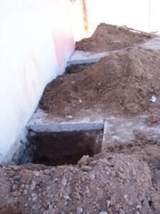 The photos above and below are two of many from my own detached garage which had to have five helical piers installed. It wasn’t cheap and this was in 2007.